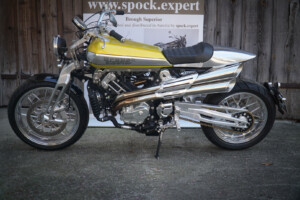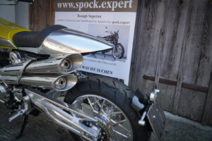 Dieses Motorrad hebt sich mit ihren außergewöhnlichen Teilen von der Masse ab .