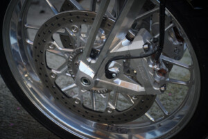 Eine Fior Gabel, die wie ein Präzisionswerkzeug arbeitet und für präzise Führung und Dämpfung verantwortlich ist. Ein Bremssystem, bestehend aus einer 320 mm Bremsscheibe mit 4-Kolben-Radialbremssättel von Beringer unterstreicht die französische Exzellenz.